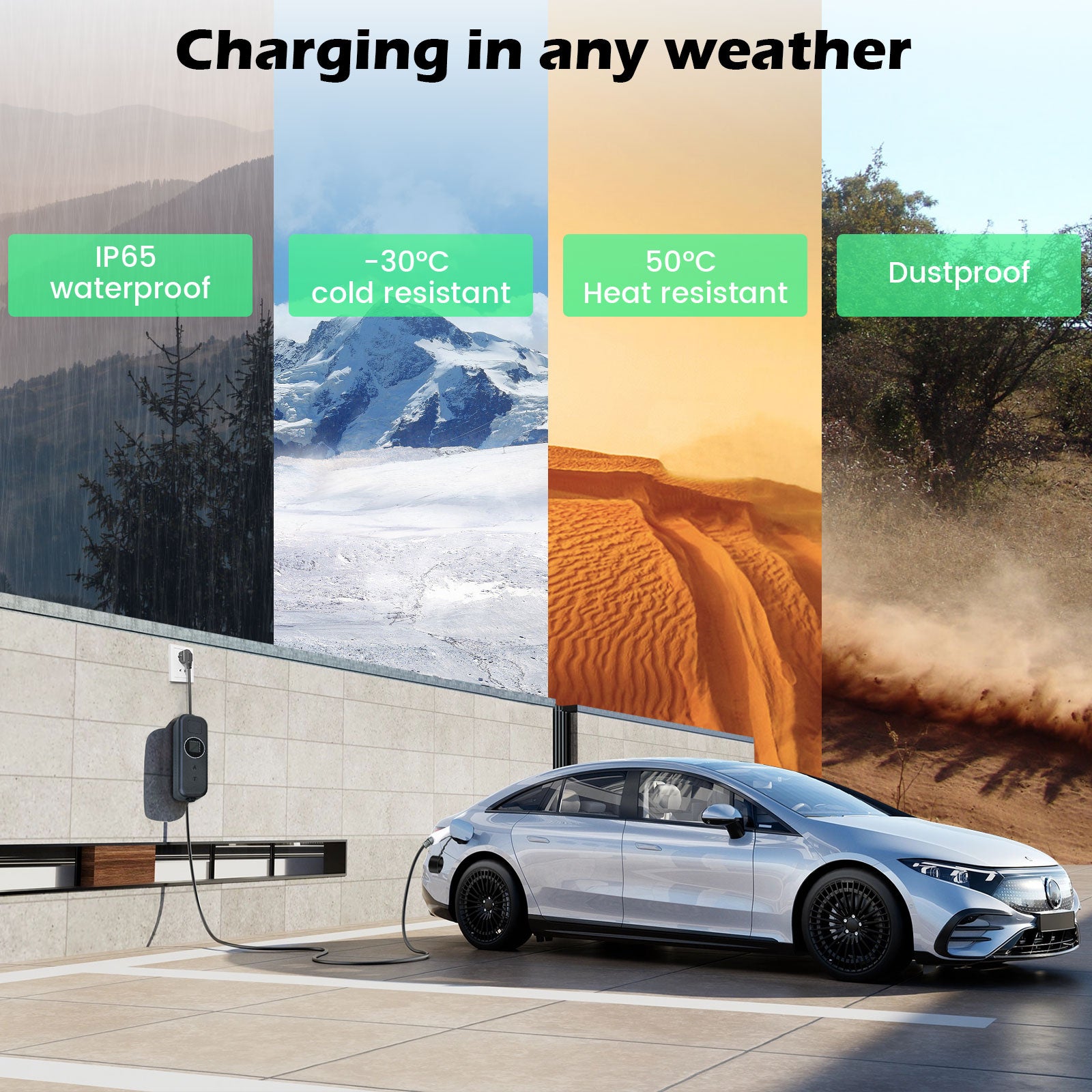 A: Den er kompatibel med alle bilmærker, så længe opladningsporten (Type 1 eller Type 2) passer. For at sikre optimal ydeevne skal du vælge en oplader, der bedst matcher din bils maksimale understøttede effekt og spænding.